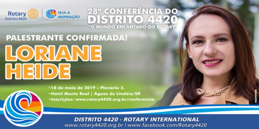 De 16 a 19 de maio de 2019, no Hotel Monte Real, em Águas de Lindóia/SP, vamos mergulhar no mundo encantado do Rotary, durante a 28ª Conferência do Distrito 4420 do Rotary International.